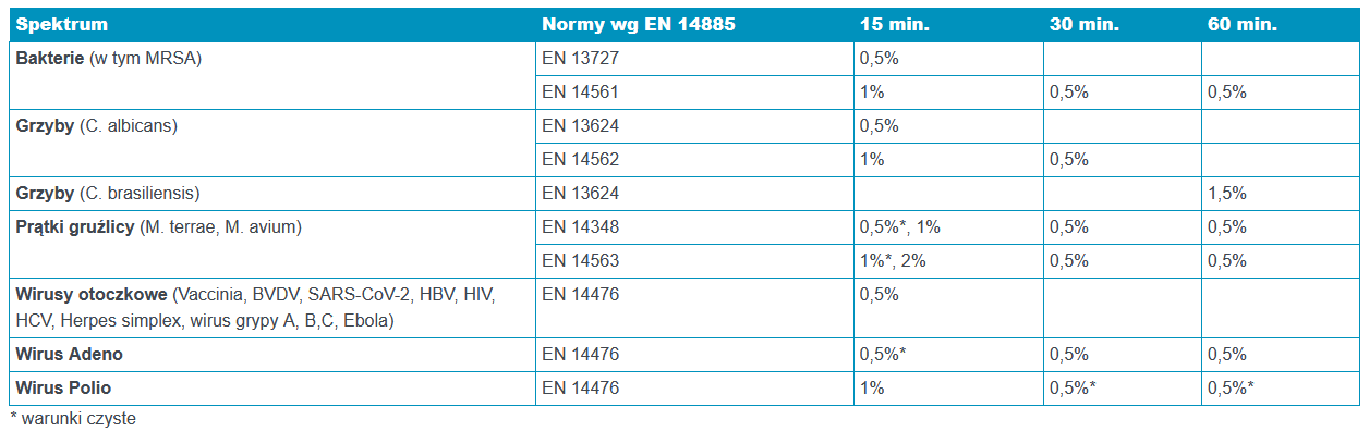 opartej na synergii surfaktanów i technologii nano-miceli produkt posiada szerokie spektrum bójcze i wyjątkowe