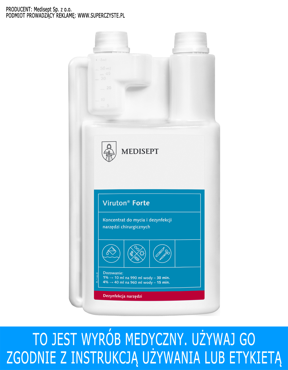 Medisept Viruton Forte 1 L - koncentrat do mycia i dezynfekcji narzędzi chirurgicznych
