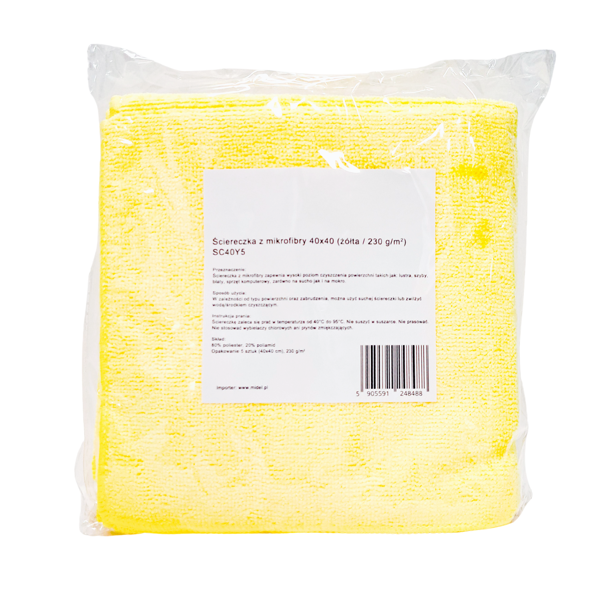 SC Ściereczka z mikrofibry 40x40cm, 230gsm, ŻÓŁTA 5 szt.
